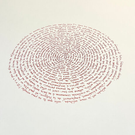 <i>Vers du testament, solitude de Pasolini</i>, 2023, Red ink on 220g Fabriano paper, 42 x 59.4 cm, unique piece (detail)