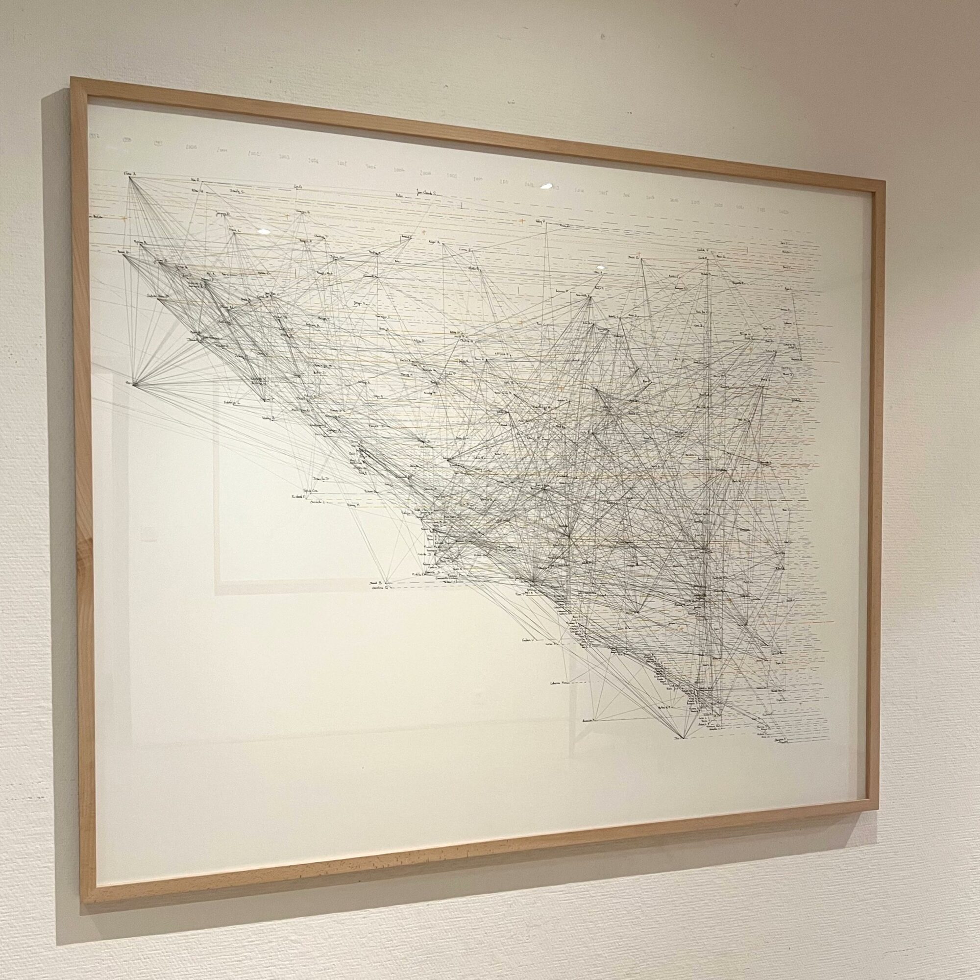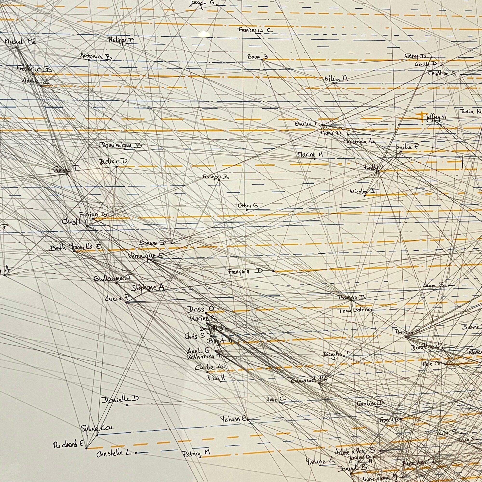 <i>Cartographie #3, 2023</i>, Graphite, black ink, grey, blue, and orange felt-tip pens on 220g drawing paper, wooden frame, glass, 163.50 x 113.50 cm, unique piece (detail)