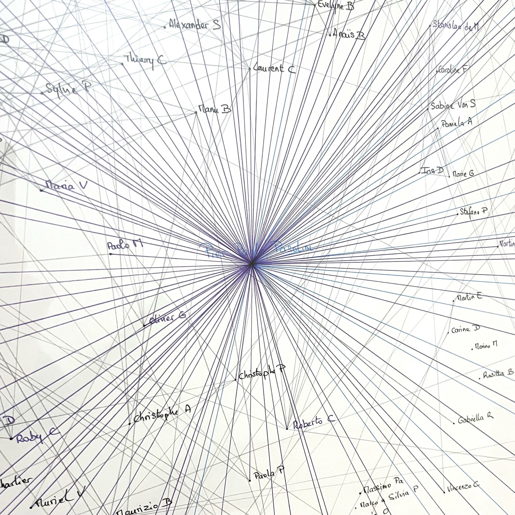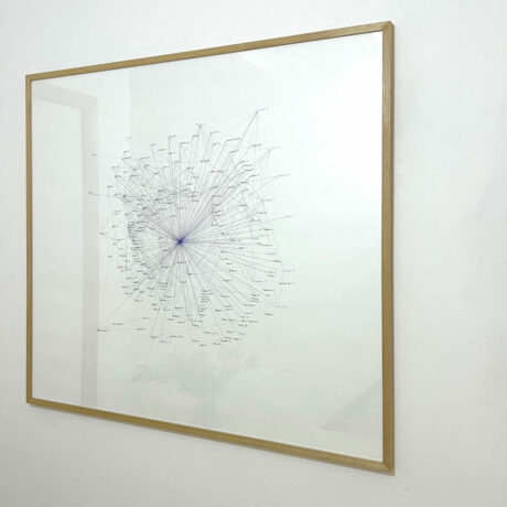 <i>Cartographie Pasolinienne, 2022</i>, graphite, black, blue and purple permanent markers, 220g Fabriano paper, wood frame, glass, 110 x 120 cm, unique piece